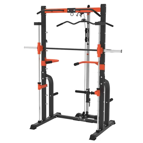 - 深蹲架模块:内置安全杠+J型钩,适配杠铃深蹲、硬拉;配重区支持自由重量+史密斯机模式(部分型号)。